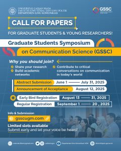 Yogyakarta, 6 September 2025 – Hallo sobat DIKOM! Departemen Ilmu Komunikasi, Fakultas Ilmu Sosial dan Ilmu Politik, Universitas Gadjah Mada memperingati Maulid Nabi Muhammad SAW yang jatuh pada 12 Rabiul Awal 1447 H. Peringatan ini dimaknai sebagai momentum untuk meneladani ajaran Rasulullah dalam kehidupan sehari-hari. Melalui kesempatan tersebut, Departemen Ilmu Komunikasi FISIPOL UGM mengajak seluruh civitas akademika dan masyarakat luas untuk menjadikan Maulid Nabi sebagai sarana memperkuat nilai persaudaraan, menumbuhkan semangat perdamaian, serta menanamkan kebijaksanaan dalam kehidupan bermasyarakat. Informasi lebih