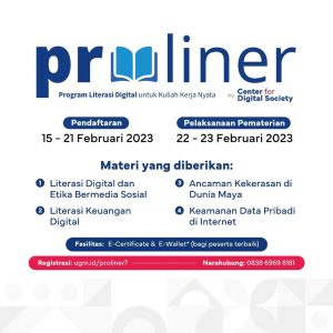 Halo, Sobat Dikom! CfDS kembali menyelenggarakan Proliner atau Program Literasi Digital untuk Kuliah Kerja Nyata ke-7. Proliner adalah program Training of Trainer (ToT) yang didesain untuk calon peserta KKN dari seluruh universitas di Indonesia.