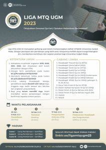 Halo, Sobat Dikom! Kini, Komunitas MTQ Universitas Gadjah Mada kembali menyelenggarakan Liga MTQ UGM 2023 yang bertajuk “Wujudkan Generasi Qur’ani, Ciptakan Mahasiswa Berprestasi”. Liga ini merupakan gerbang awal dalam mempersiapkan kafilah MTQMN Universitas Gadjah Mada.