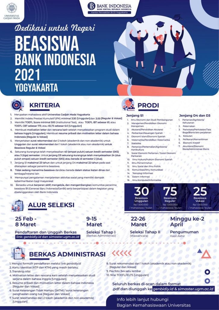 Pendaftaran Beasiswa Bank Indonesia 2021 telah dibuka!
