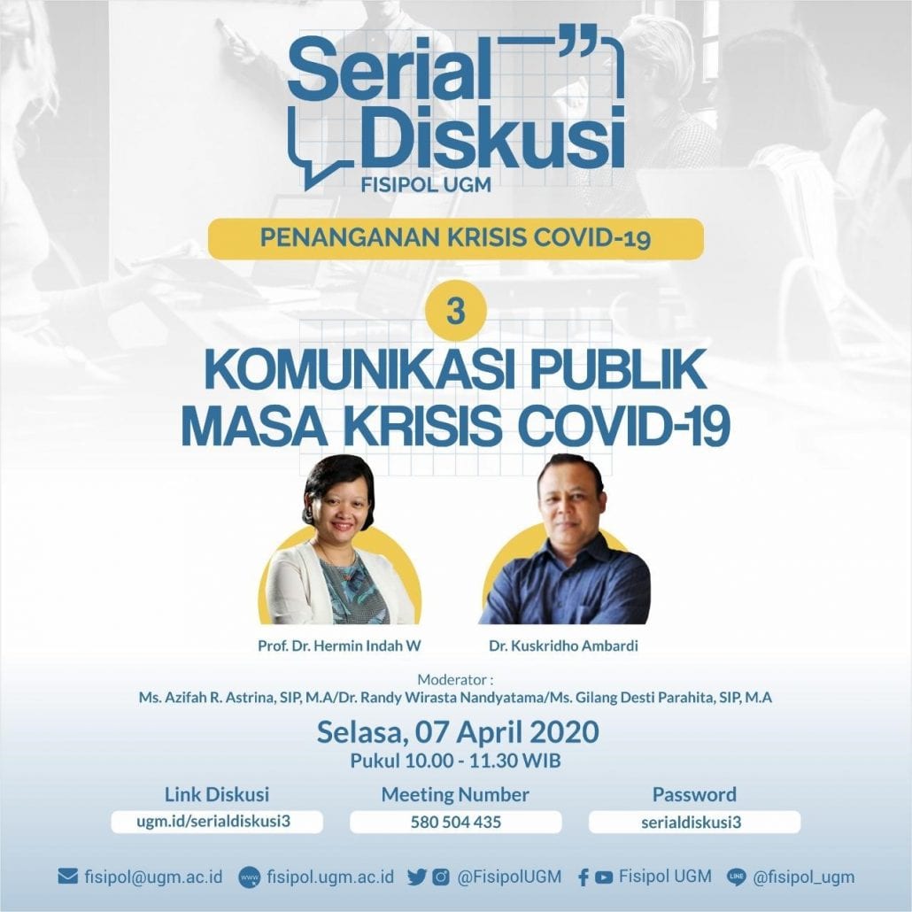 Beranda / Agenda / SERIAL DISKUSI FISIPOL UGM – Penanganan Krisis Covid-19: Komunikasi Publik Masa Krisis Covid-19